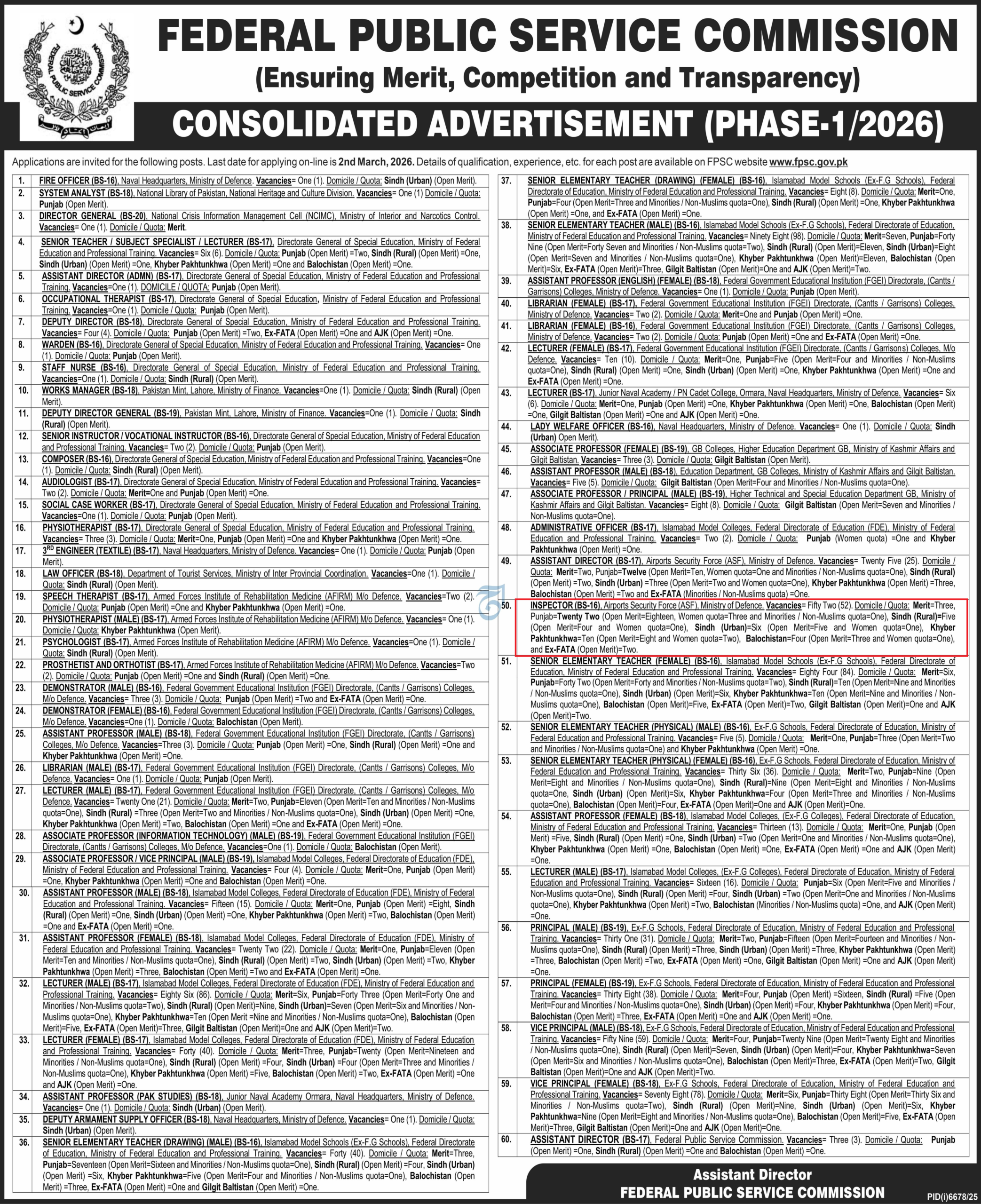 The last date to apply for ASF Inspector Jobs 2026 is 02 March 2026. Applicants must carefully review the eligibility criteria, including physical standards and domicile quota, before submitting the online application through FPSC. Candidates are strongly advised to read the complete official advertisement before applying.
