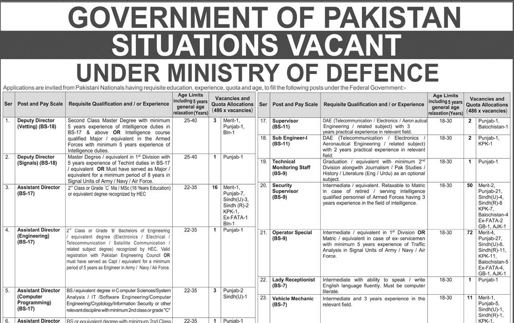 Ministry of Defence Islamabad Jobs 2026 Ministry of Defence Islamabad Jobs 2026 have been announced through an official advertisement published on 01 February 2026 in the Daily Jang newspaper.The Ministry invites applications for multiple vacant posts including Photo Printer, Lower Division Clerk, Security Assistant Sub Inspector, Security Sub Inspector, Charge Nurse, Deputy Director, Assistant Director, … Read more