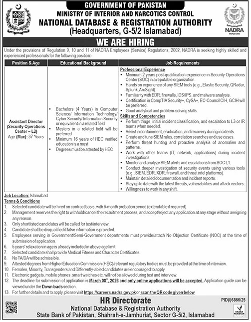 National Database & Registration Authority NADRA Jobs 2026 Advertisement