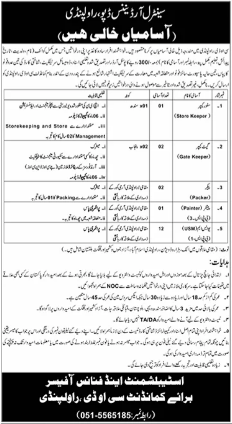 The Central Ordnance Depot (COD) Rawalpindi is an essential logistics and supply unit of the Pakistan Army, responsible for the procurement, storage, maintenance, and distribution of ordnance equipment, ammunition, and military supplies. Located in Rawalpindi, Punjab, COD plays a vital role in supporting national defense operations. This recruitment drive aims to fill essential support roles with dedicated and skilled personnel to ensure smooth functioning of depot activities.