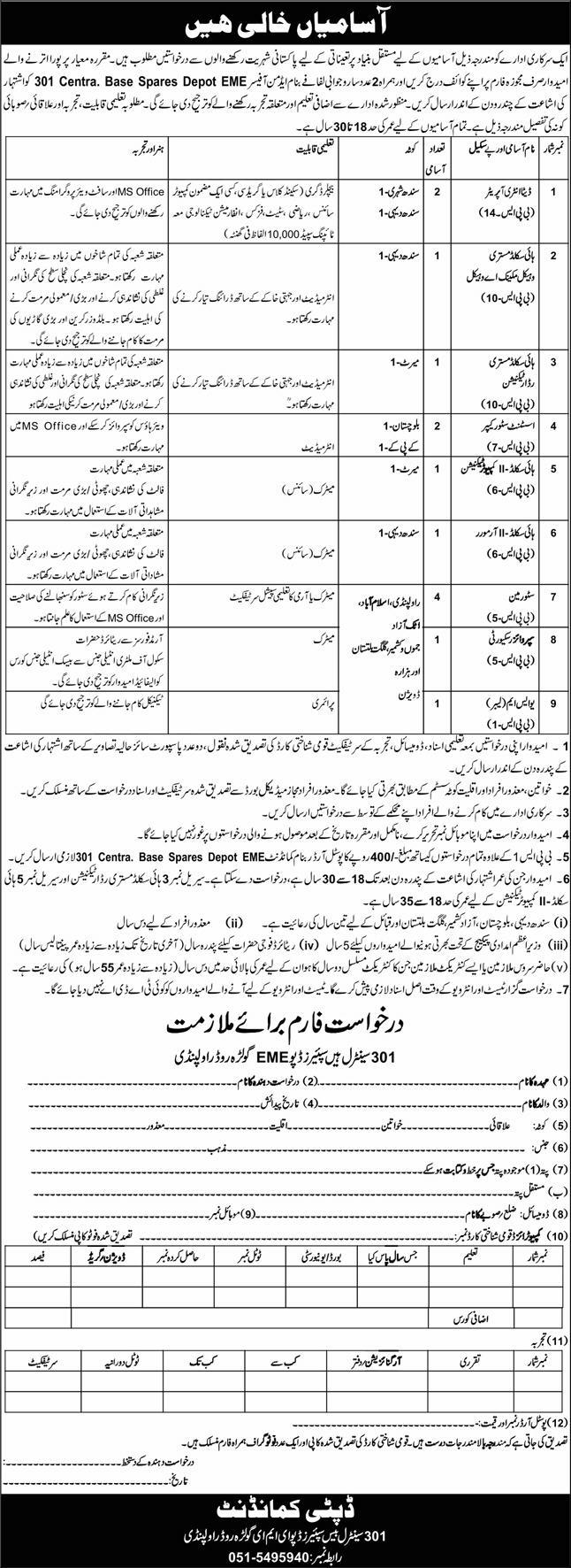 Candidates with educational qualifications such as Primary, Matric, Intermediate, DAE, and Bachelor are eligible to apply depending on the position requirements. These jobs fall under the Government Army Job Category and offer long-term career stability and benefits.