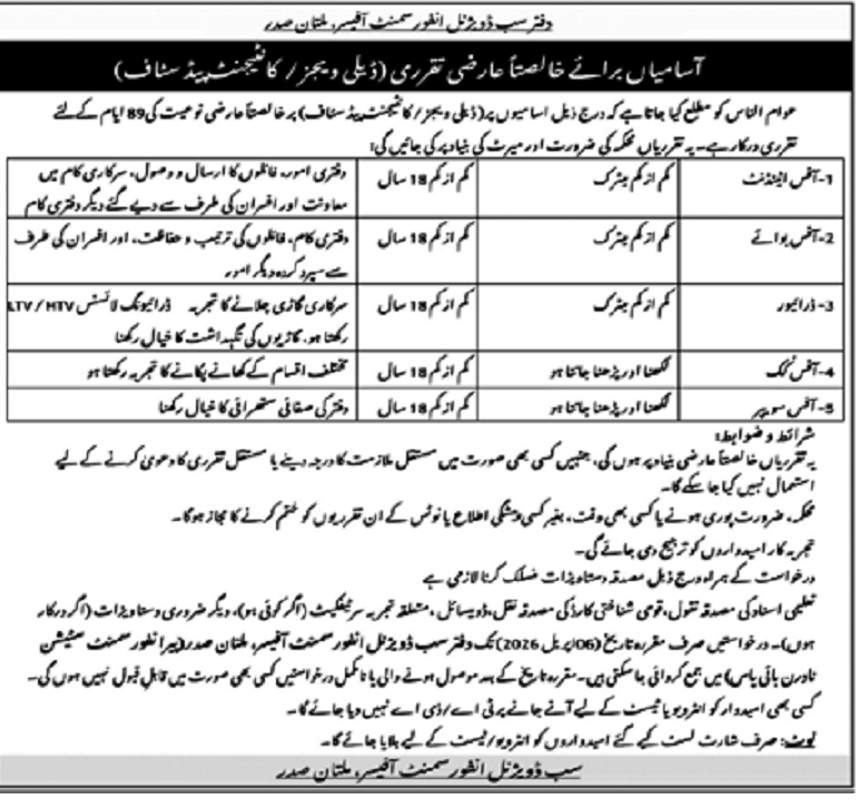 These job opportunities are specifically for residents of Multan and offer short-term government employment. Selection will be made strictly on merit, and incomplete or late applications will not be considered.