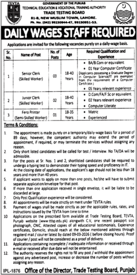 According to the official advertisement, TEVTA is inviting applications from eligible candidates for clerical and technical support positions. Interested applicants are strongly advised to carefully read the complete advertisement to understand eligibility criteria, required qualifications, and the official application procedure before applying.